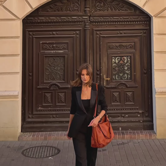 Diese geräumige Ledertasche ist perfekt für den Alltag, die Arbeit oder die Stadt und bietet ausreichend Platz für alle wichtigen Dinge, einschließlich Dokumente im A4-Format. Das robuste Leder fühlt sich weich an und erhält mit der Zeit eine schöne Patina, die den Charakter der Tasche unterstreicht. Die tote bag schließt sicher mit einem Reißverschluss, und im Inneren sorgen praktische Fächer und eine Reißverschlusstasche für Ordnung. Zusätzliche Außenfächer machen diese Shopper Tasche besonders funktional, während die bequemen Tragegriffe ein angenehmes Tragen auf der Schulter ermöglichen. Ob für den täglichen Gebrauch, Büro oder Freizeit – diese Shopper Handtasche kombiniert Stil, Komfort und hochwertige Verarbeitung in einem zeitlosen Accessoire.